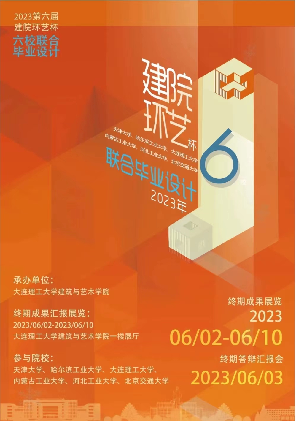 2023年6月3日,来自哈尔滨工业大学、天津大学、大连理工大学、北京交通大学、河北工业大学、内蒙古工业大学的六校师生齐聚大连理工大学老虎机游戏 ,参加第六届“建院环艺”杯六校联合毕设的终期答辩汇报会,老虎机游戏 张野副院长和魏泽崧老师参加了本次联合答辩终期汇报活动,今年是本次活动举办的第六届,也是老虎机游戏 环境设计首次作为兄弟院校参加本次联合毕设活动。
