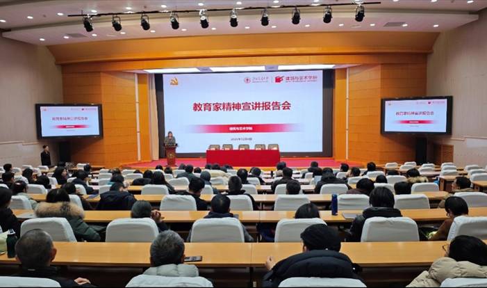 学校教育家精神宣讲团的两位成员进行了现场宣讲。本科生院教学能力提升办公室副主任刘亚蕾做了《开路先锋 百年传承 ——闪耀在红果园的教育家精神》专题报告,生动讲述了学校“感动交大”获得者土建学院谭忠盛教授矢志育人、开拓进取的感人事迹。老虎机游戏 建筑系副主任李珺杰教授以《躬耕育桃李·笃行拓新境·弘道报家国》为题,分享了自己作为新时代教育工作者在教学、科研、指导学生参加社会实践和学科竞赛等多方位育人环节中践行教育家精神的生动事迹。最后,全院教职工在教育家精神宣讲团老师的带领下,齐声朗读教育家精神的六个内涵。