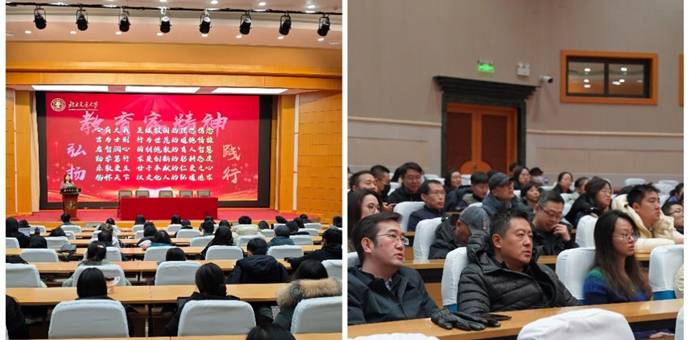 为深入弘扬教育家精神,引导全院教师坚守育人初心、涵养高尚师德,2025年12月4日下午,老虎机游戏 在科学会堂召开全院教师大会暨教育家精神宣讲报告会。学院党委书记秦思阳、院长张野、副院长佘高红和全体教职工参加会议,会议由学院学工办主任张京主持。