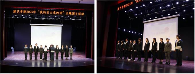 新辰初绽,风采尽显。2025级团支部依次进行了风采展示:建规2501、2502团支部联合演绎的话剧《铁血梅花祭》,将跨越时空的抗战信仰之力与民族牺牲精神生动呈现在舞台之上;设计2501团支部带来了合唱《我和我的祖国》与舞蹈《红马》,以饱满的热情和优美的旋律,抒发了对祖国的深切热爱与真挚祝福;设计2502团支部的《墨色丹心》表演,巧妙融合了朗诵、情景表演与古典舞蹈元素,表达了作为未来艺术工作者,决心扎根中华优秀传统文化沃土,以笔墨丹青绘就时代新篇的坚定初心;设计2503团支部演唱了《如愿》与《向阳而生》两首曲目,表达对先辈奋斗成果的感恩与实现民族复兴伟业宏伟蓝图的决心,唱出了青年人对光明未来的无限憧憬与积极进取的人生态度。